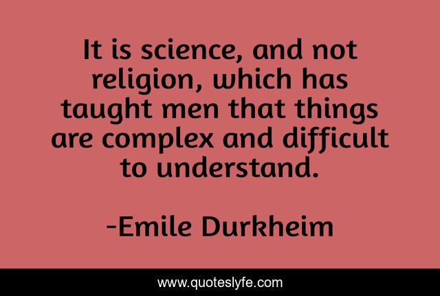 This page presents the quote "It is science, and not religion, which has taught men that things are complex and difficult to understand.". Author of this quote is Emile Durkheim. This quote is about religion, men, difficult,.