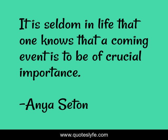 This page presents the quote "It is seldom in life that one knows that a coming event is to be of crucial importance.". Author of this quote is Anya Seton. .