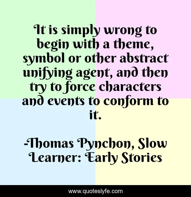 "Thomas Pynchon, Slow Learner: Early Stories Quotes." Quoteslyfe.com, 2025. Sat. 13 Dec. 2025. <https://www.quoteslyfe.com/quote/It-is-simply-wrong-to-begin-with-27206>.