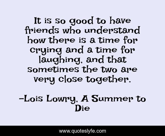 This page presents the quote "It is so good to have friends who understand how there is a time for crying and a time for laughing, and that sometimes the two are very close together.". Author of this quote is Lois Lowry, A Summer to Die. This quote is about best-friend, joy, true-friend, sad, crying, laughter, friendship, happy,.