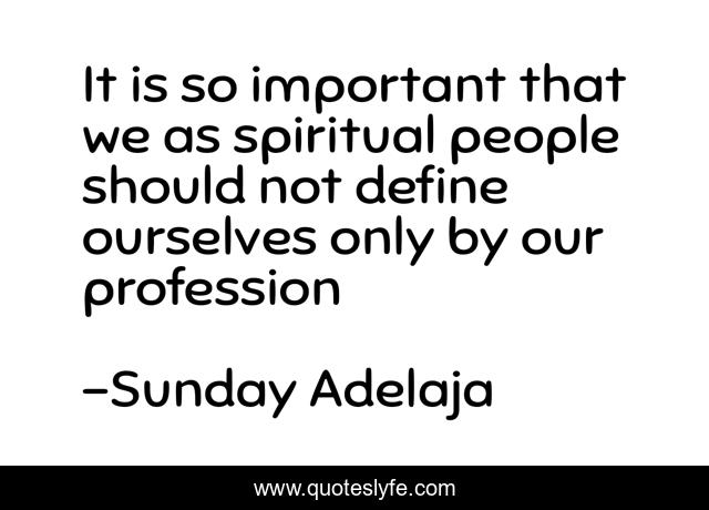 This page presents the quote "It is so important that we as spiritual people should not define ourselves only by our profession". Author of this quote is Sunday Adelaja. This quote is about define, spiritual, important, profession, people,.