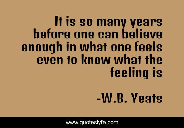 This page presents the quote "It is so many years before one can believe enough in what one feels even to know what the feeling is". Author of this quote is W.B. Yeats. This quote is about maturity, feeling, time,.
