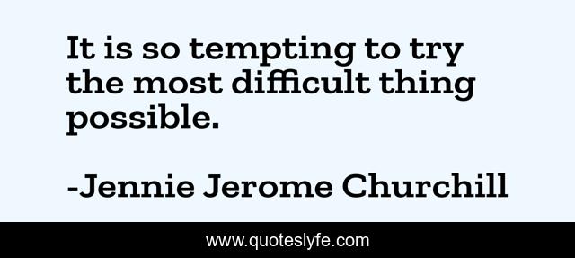 This page presents the quote "It is so tempting to try the most difficult thing possible.". Author of this quote is Jennie Jerome Churchill. .