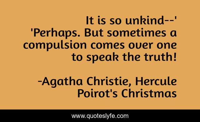 This page presents the quote "It is so unkind--' 'Perhaps. But sometimes a compulsion comes over one to speak the truth!". Author of this quote is Agatha Christie, Hercule Poirot's Christmas. This quote is about bonding, family-relationships,.