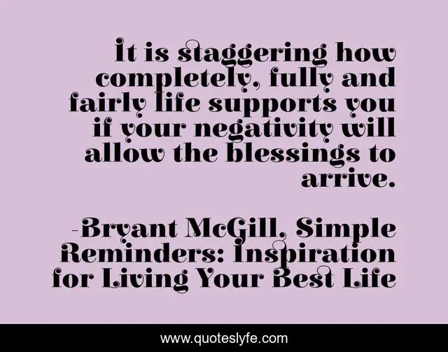 This page presents the quote "It is staggering how completely, fully and fairly life supports you if your negativity will allow the blessings to arrive.". Author of this quote is Bryant McGill, Simple Reminders: Inspiration for Living Your Best Life. This quote is about arrival, blessings, negativity, fairness,.