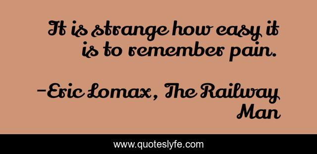 This page presents the quote "It is strange how easy it is to remember pain.". Author of this quote is Eric Lomax, The Railway Man. This quote is about strange, pain, forget, remember,.