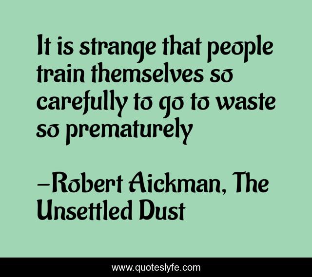 This page presents the quote "It is strange that people train themselves so carefully to go to waste so prematurely". Author of this quote is Robert Aickman, The Unsettled Dust. This quote is about waste, mankind,.
