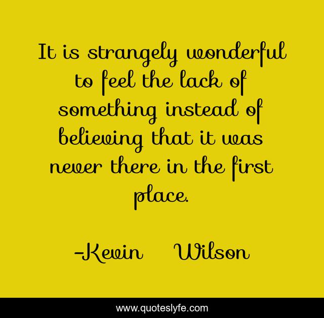 This page presents the quote "It is strangely wonderful to feel the lack of something instead of believing that it was never there in the first place.". Author of this quote is Kevin Wilson. This quote is about lies, acting, love, family, affection,.