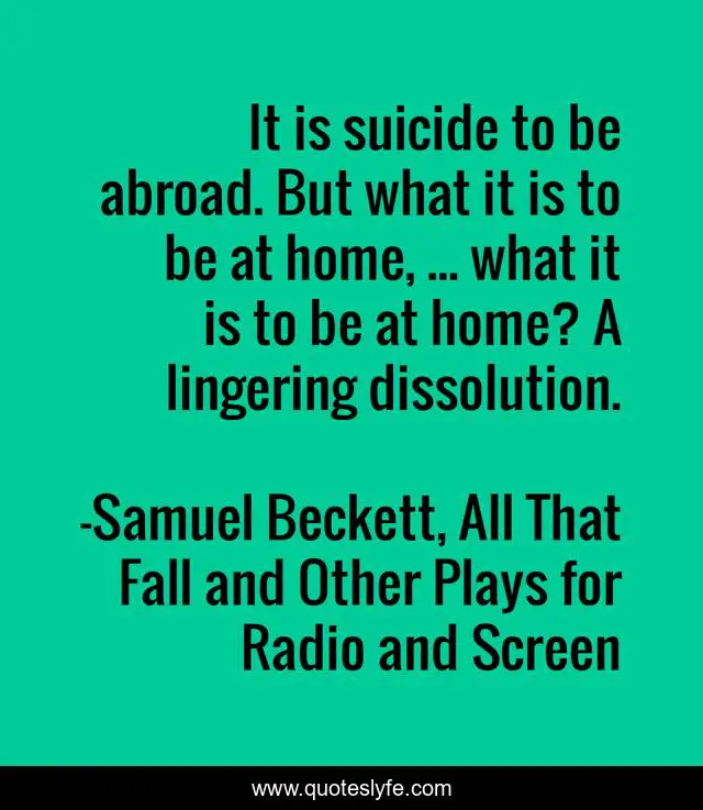 "Samuel Beckett, All That Fall and Other Plays for Radio and Screen Quotes." Quoteslyfe.com, 2025. Mon. 08 Dec. 2025. <https://www.quoteslyfe.com/quote/It-is-suicide-to-be-abroad-But-8127>.