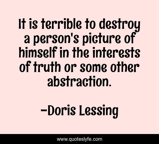 This page presents the quote "It is terrible to destroy a person's picture of himself in the interests of truth or some other abstraction.". Author of this quote is Doris Lessing. .
