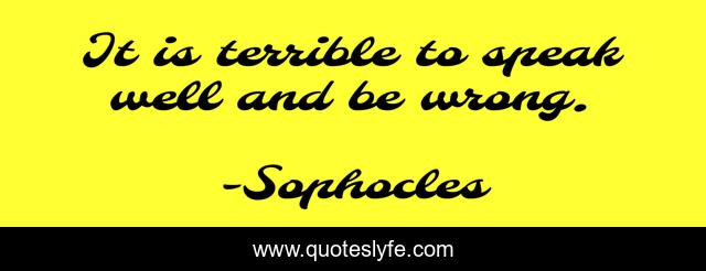 This page presents the quote "It is terrible to speak well and be wrong.". Author of this quote is Sophocles. This quote is about speakers, speeches,.