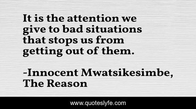 This page presents the quote "It is the attention we give to bad situations that stops us from getting out of them.". Author of this quote is Innocent Mwatsikesimbe, The Reason. This quote is about life, problems, motivation, self-improvement, self-help, problem-solving, inspiration,.