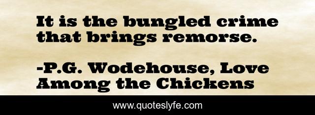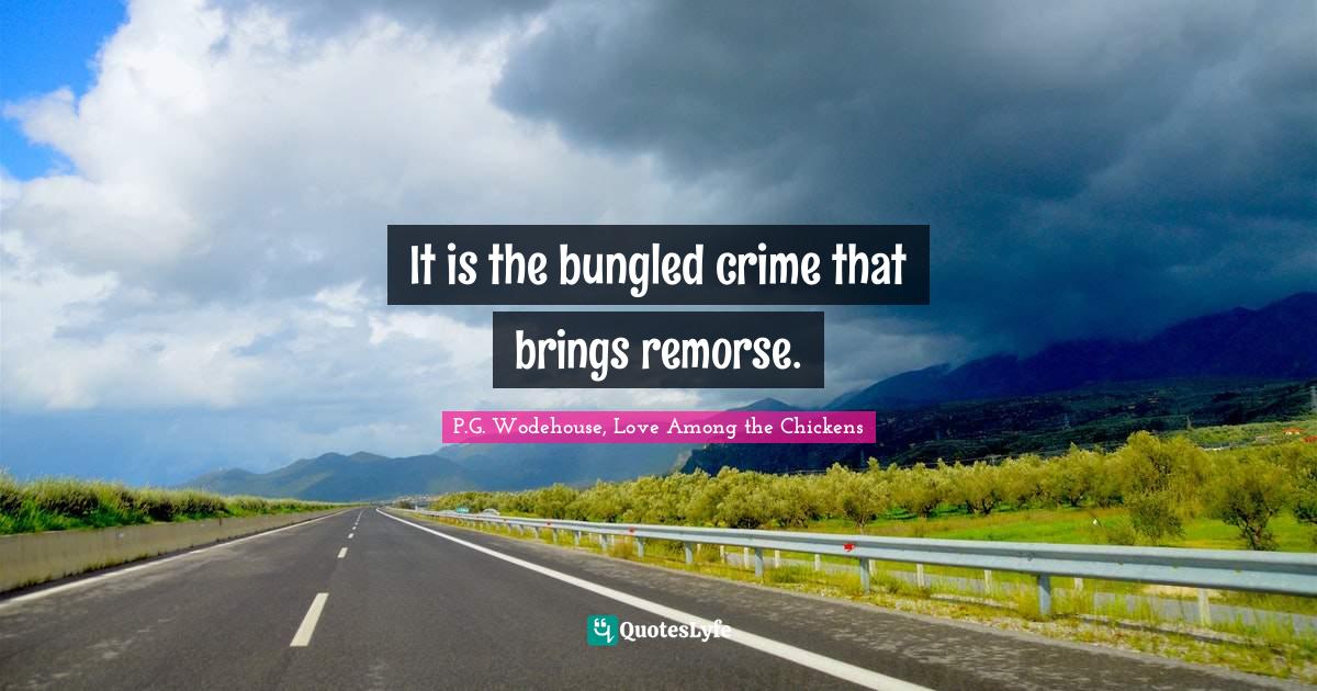 This page presents the quote "It is the bungled crime that brings remorse.". Author of this quote is P.G. Wodehouse, Love Among the Chickens. This quote is about crime, remorse, regret, principles,.