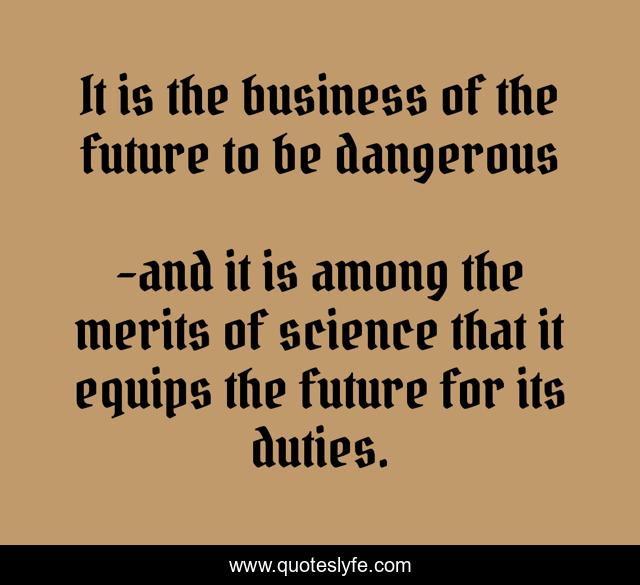 This page presents the quote "It is the business of the future to be dangerous". Author of this quote is and it is among the merits of science that it equips the future for its duties.. This quote is about science and the modern world, alfred north whitehead,.