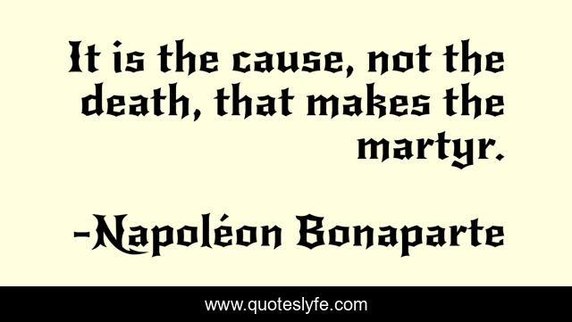 This page presents the quote "It is the cause, not the death, that makes the martyr.". Author of this quote is Napoléon Bonaparte. .