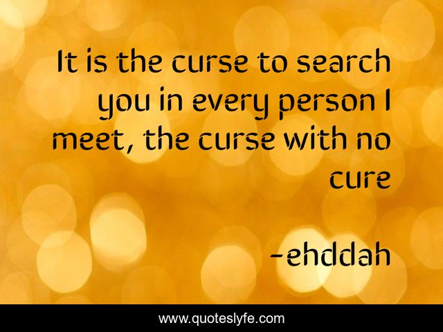 This page presents the quote "It is the curse to search you in every person I meet, the curse with no cure". Author of this quote is ehddah. This quote is about lost-love, love-hurts,.