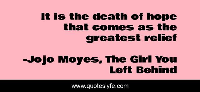 This page presents the quote "It is the death of hope that comes as the greatest relief". Author of this quote is Jojo Moyes, The Girl You Left Behind. This quote is about loss, hope, love, relief, affection,.