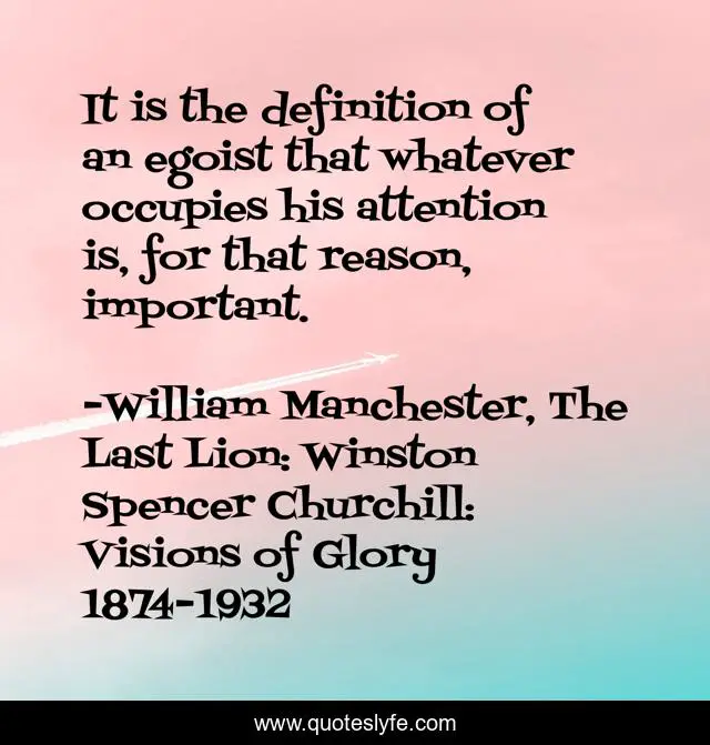 "William Manchester, The Last Lion: Winston Spencer Churchill: Visions of Glory 1874-1932 Quotes." Quoteslyfe.com, 2025. Fri. 05 Dec. 2025. <https://www.quoteslyfe.com/quote/It-is-the-definition-of-an-egoist-195830>.