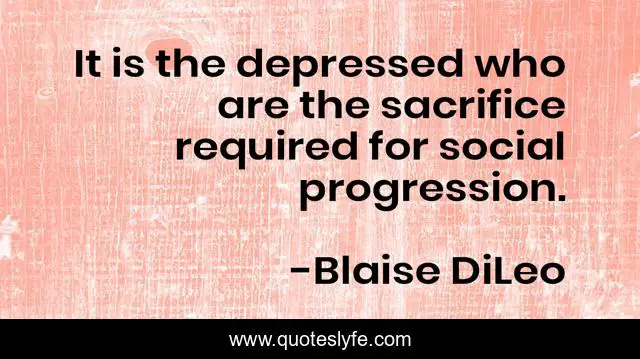 This page presents the quote "It is the depressed who are the sacrifice required for social progression.". Author of this quote is Blaise DiLeo. .