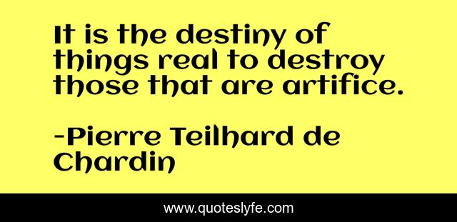 This page presents the quote "It is the destiny of things real to destroy those that are artifice.". Author of this quote is Pierre Teilhard de Chardin. This quote is about evolution, priest, paleontologist, jesuit, philosopher,.