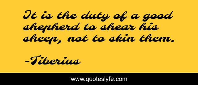 This page presents the quote "It is the duty of a good shepherd to shear his sheep, not to skin them.". Author of this quote is Tiberius. This quote is about sheep, duty, skin,.