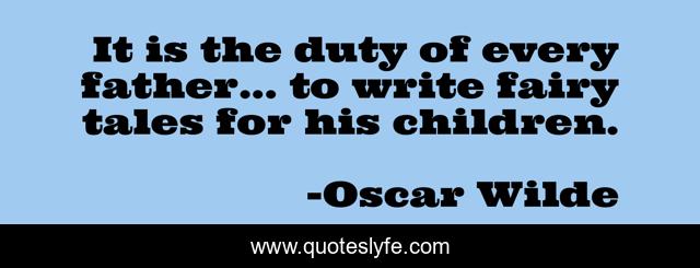 This page presents the quote "It is the duty of every father... to write fairy tales for his children.". Author of this quote is Oscar Wilde. This quote is about fair-tales, father, inspirational, enthusiasm,.