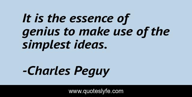 This page presents the quote "It is the essence of genius to make use of the simplest ideas.". Author of this quote is Charles Peguy. .