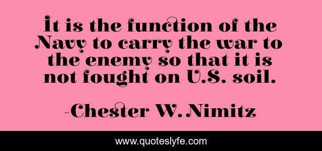 This page presents the quote "It is the function of the Navy to carry the war to the enemy so that it is not fought on U.S. soil.". Author of this quote is Chester W. Nimitz. This quote is about navy, enemy, carry,.