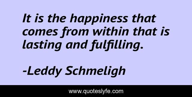This page presents the quote "It is the happiness that comes from within that is lasting and fulfilling.". Author of this quote is Leddy Schmeligh. .