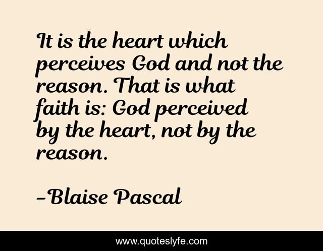 This page presents the quote "It is the heart which perceives God and not the reason. That is what faith is: God perceived by the heart, not by the reason.". Author of this quote is Blaise Pascal. This quote is about faith, reason, heart,.