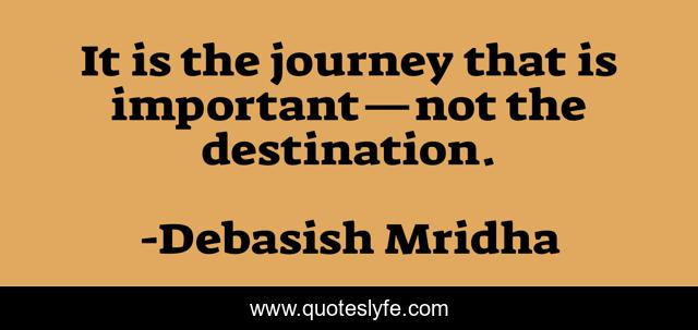 This page presents the quote "It is the journey that is important—not the destination.". Author of this quote is Debasish Mridha. This quote is about philosophy, destination, debasish-mridha, quotes, journey, debasish-mridha-md, inspirational, enthusiasm, life-is-about-the-journey,.