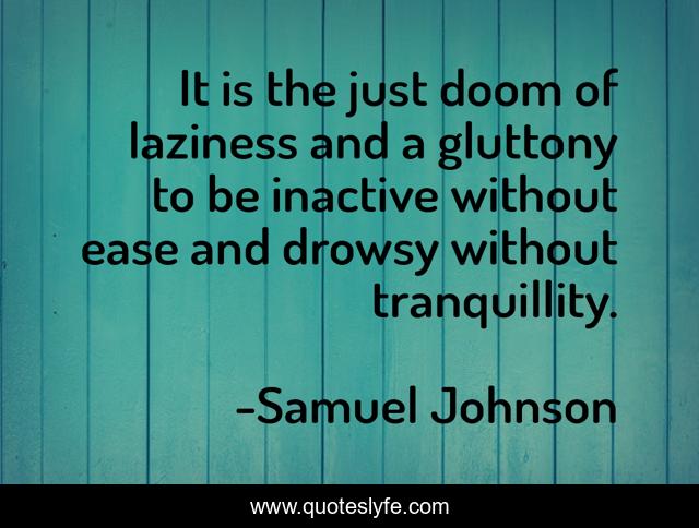 This page presents the quote "It is the just doom of laziness and a gluttony to be inactive without ease and drowsy without tranquillity.". Author of this quote is Samuel Johnson. .