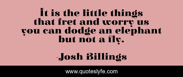 This page presents the quote "It is the little things that fret and worry us you can dodge an elephant but not a fly.". Author of this quote is Josh Billings. .