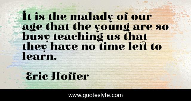 This page presents the quote "It is the malady of our age that the young are so busy teaching us that they have no time left to learn.". Author of this quote is Eric Hoffer. .