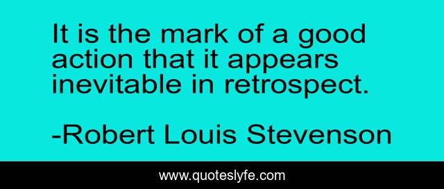 This page presents the quote "It is the mark of a good action that it appears inevitable in retrospect.". Author of this quote is Robert Louis Stevenson. .