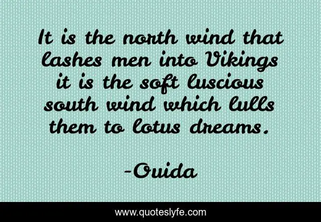 This page presents the quote "It is the north wind that lashes men into Vikings it is the soft luscious south wind which lulls them to lotus dreams.". Author of this quote is Ouida. .