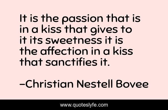 This page presents the quote "It is the passion that is in a kiss that gives to it its sweetness it is the affection in a kiss that sanctifies it.". Author of this quote is Christian Nestell Bovee. This quote is about passion, kiss, affection,.
