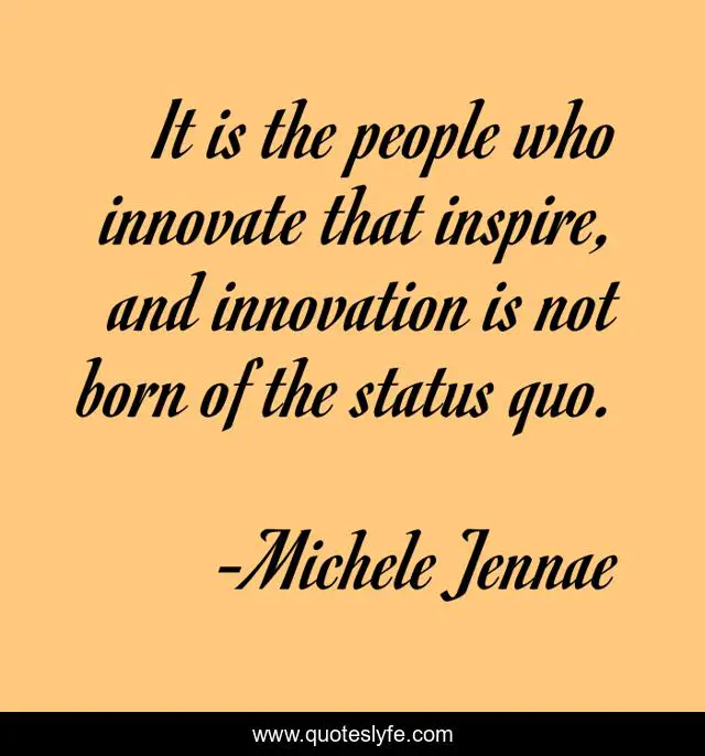 This page presents the quote "It is the people who innovate that inspire, and innovation is not born of the status quo.". Author of this quote is Michele Jennae. This quote is about innovation, creativity, leaders, inspiration,.