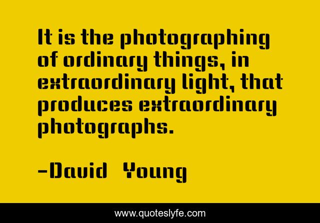 This page presents the quote "It is the photographing of ordinary things, in extraordinary light, that produces extraordinary photographs.". Author of this quote is David Young. This quote is about light, photograpy,.