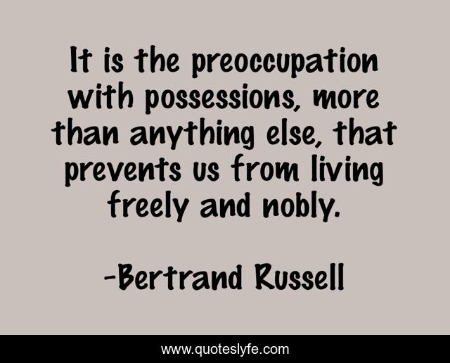 This page presents the quote "It is the preoccupation with possessions, more than anything else, that prevents us from living freely and nobly.". Author of this quote is Bertrand Russell. This quote is about bertrand-russell, freedom, posessions, materialism,.