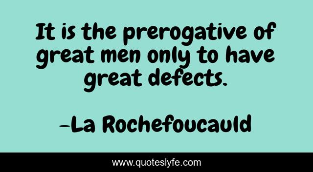 This page presents the quote "It is the prerogative of great men only to have great defects.". Author of this quote is La Rochefoucauld. .