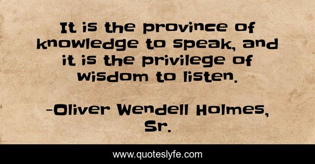 This page presents the quote "It is the province of knowledge to speak, and it is the privilege of wisdom to listen.". Author of this quote is Oliver Wendell Holmes, Sr.. This quote is about wisdom, speak, listen,.