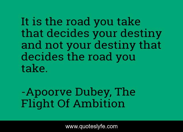 "Apoorve Dubey, The Flight Of Ambition Quotes." Quoteslyfe.com, 2025. Sat. 06 Dec. 2025. <https://www.quoteslyfe.com/quote/It-is-the-road-you-take-that-14441>.