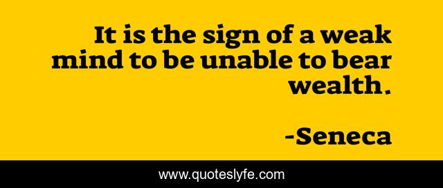 This page presents the quote "It is the sign of a weak mind to be unable to bear wealth.". Author of this quote is Seneca. .
