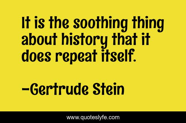This page presents the quote "It is the soothing thing about history that it does repeat itself.". Author of this quote is Gertrude Stein. This quote is about repeat, itself, soothing,.
