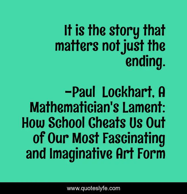 This page presents the quote "It is the story that matters not just the ending.". Author of this quote is Paul Lockhart, A Mathematician's Lament: How School Cheats Us Out of Our Most Fascinating and Imaginative Art Form. This quote is about mathematics, story, journey, math,.