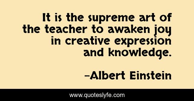 This page presents the quote "It is the supreme art of the teacher to awaken joy in creative expression and knowledge.". Author of this quote is Albert Einstein. This quote is about joy, art, knowledge,.