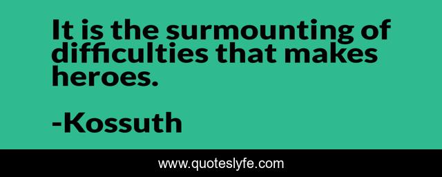 This page presents the quote "It is the surmounting of difficulties that makes heroes.". Author of this quote is Kossuth. .