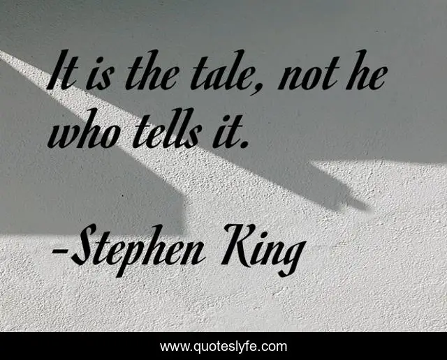 "Stephen King Quotes." Quoteslyfe.com, 2025. Sat. 06 Dec. 2025. <https://www.quoteslyfe.com/quote/It-is-the-tale-not-he-who-26894>.