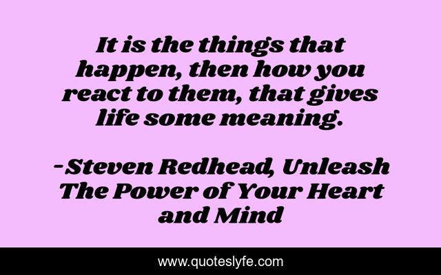 This page presents the quote "It is the things that happen, then how you react to them, that gives life some meaning.". Author of this quote is Steven Redhead, Unleash The Power of Your Heart and Mind. This quote is about gives-life-meaning, life, meaning,.